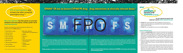 Treating chronic pain due to Osteoarthritis and/or Chronic Low Back Pain is complex, and Opana ER’s new branding needed to reflect that in a way that was easily understood and could live in various forms of collateral. In addition to re-branding Opana ER, our team was tasked with creating an ongoing series of pieces that were intended for physicians, ranging from brochures and web banners to direct mail pieces and naming future products.